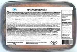 Rogen vom Capelin/Lodde (Mallotus villosus), in Salz eingelegt (orange)